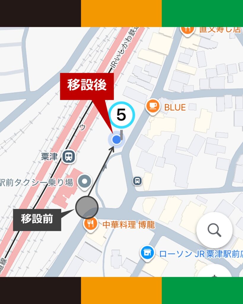 粟津駅前交差点のラウンドアバウト整備工事に伴い、ポート位置を変更しました。